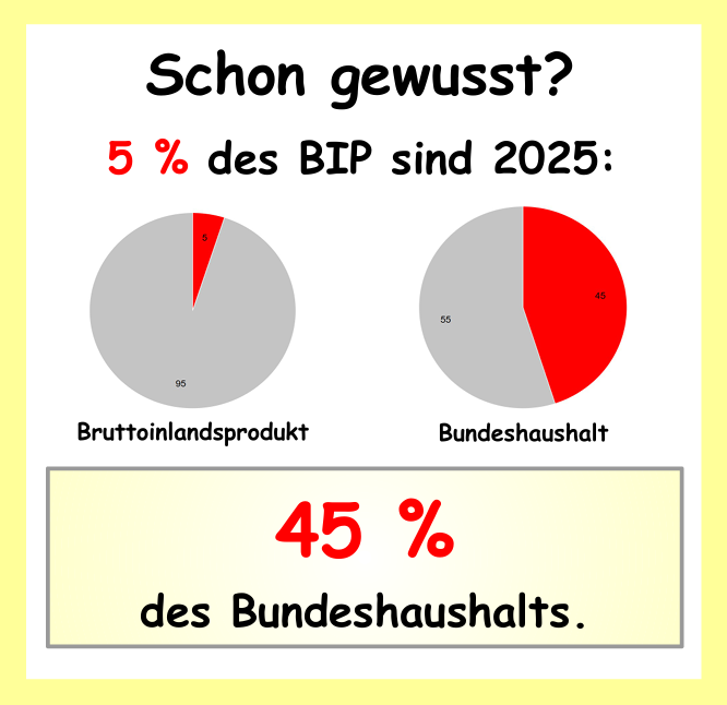 Das Bruttoinlandsprodukt (BIP) misst den Gesamtwert aller in einem Land innerhalb eines Jahres produzierten Waren und Dienstleistungen. Der Bundeshaushalt ist nur ein kleiner Teil davon und betrug im Jahr 2024 nur etwa ein Zehntel des BIP, das bei etwa 4,31 Billionen Euro lag.